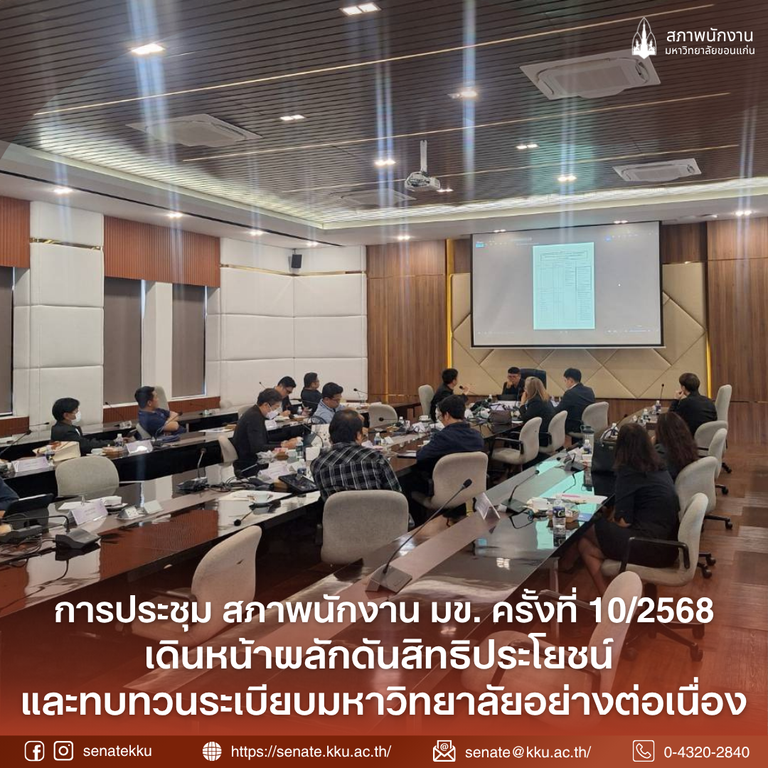 🏛️ สภาพนักงาน มข. จัดประชุมสมัยสามัญ ครั้งที่ 10/2568 เดินหน้าผลักดันสิทธิประโยชน์ และทบทวนระเบียบมหาวิทยาลัยอย่างต่อเนื่อง