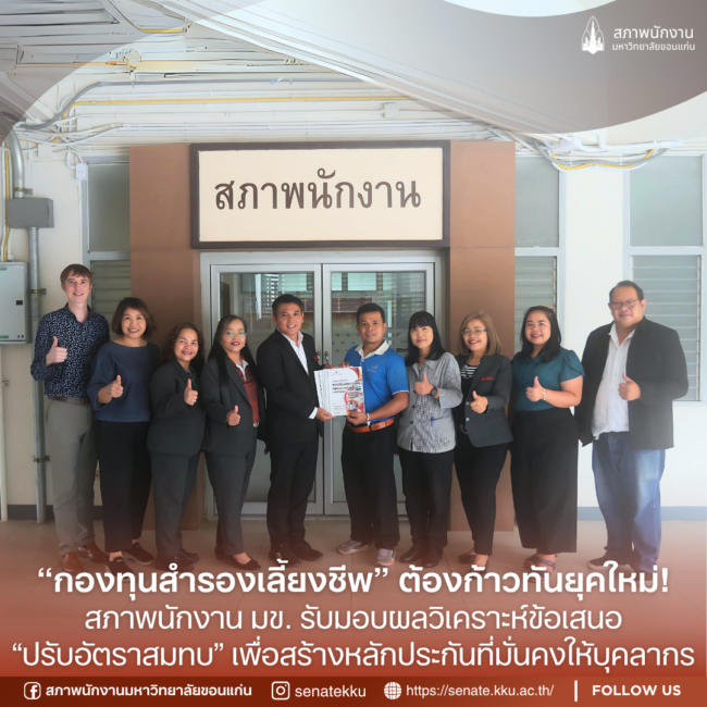 📈 “กองทุนสำรองเลี้ยงชีพ” ต้องก้าวทันยุคใหม่!สภาพนักงาน มข. รับมอบผลวิเคราะห์ข้อเสนอการ “ปรับอัตราสมทบ” เพื่อสร้างหลักประกันที่มั่นคงให้บุคลากร