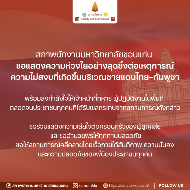 🕊️ สภาพนักงานมหาวิทยาลัยขอนแก่นขอแสดงความห่วงใยต่อเหตุก…