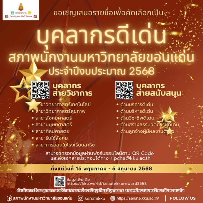 📣 ขอเชิญเสนอรายชื่อบุคลากร เพื่อพิจารณายกย่องเชิดชูเกีย…