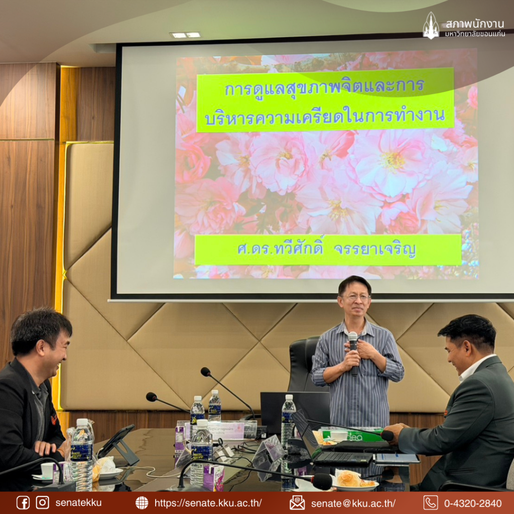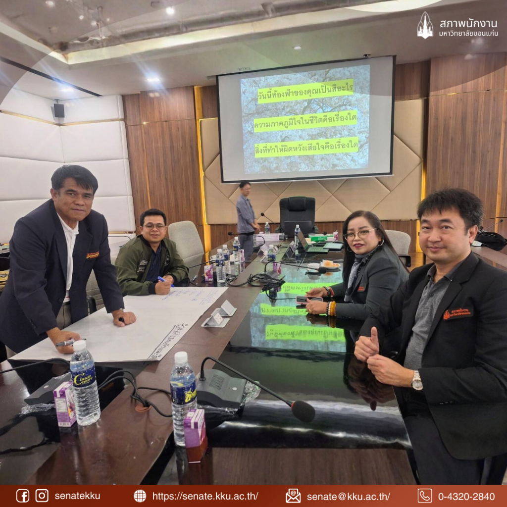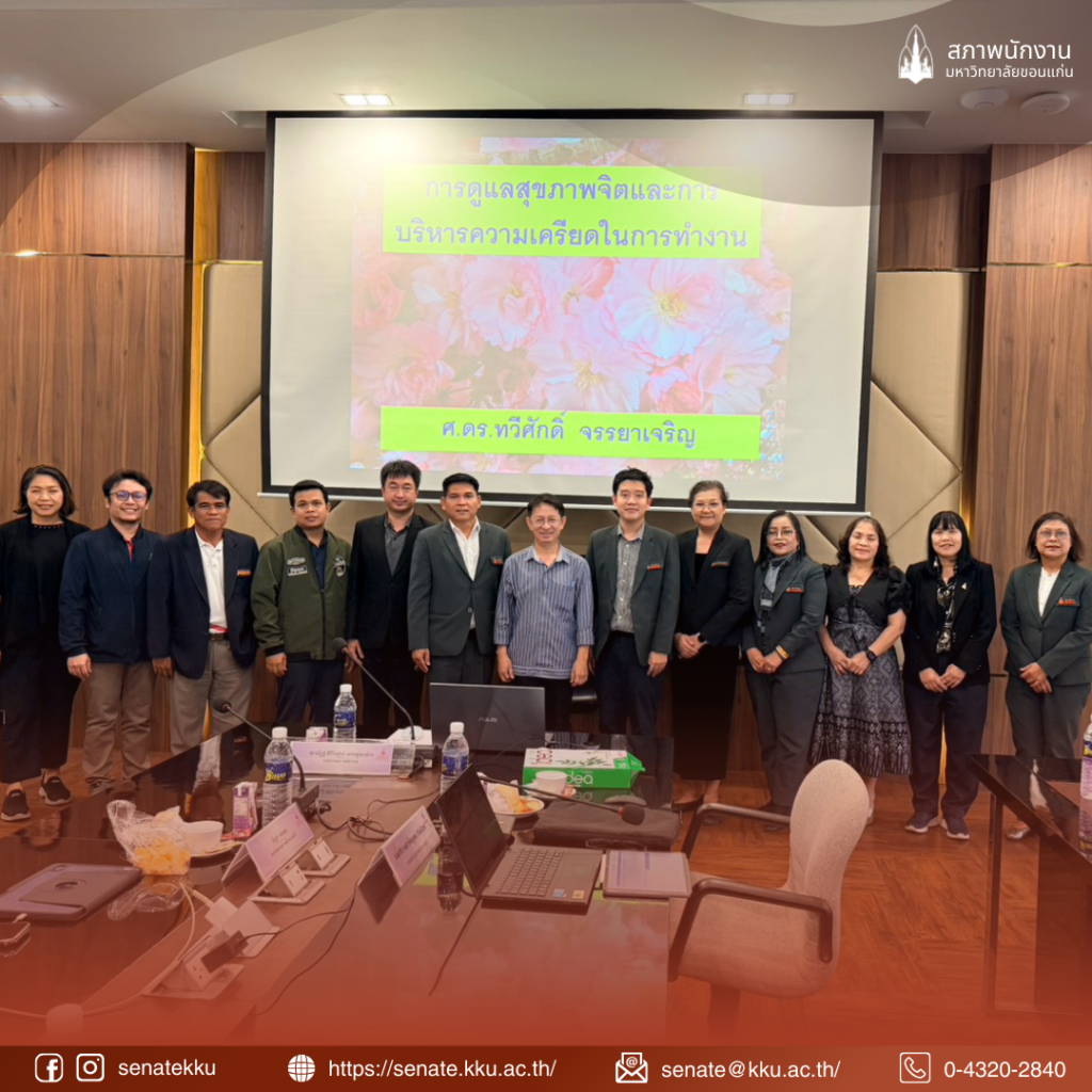 On 16 January 2026, at the Sarasit Meeting Room, Kaen Kalapaphruek Building, Khon Kaen University, the Khon Kaen University Staff Senate, led by Mr. Suphanat Siriaisoon Sethapongkorn, Chairman of the KKU Staff Senate, together with members of the Senate, organized a program entitled âEnhancing Work Efficiency of the KKU Staff Senateâ, focusing on healthcare techniques for effective work performance.