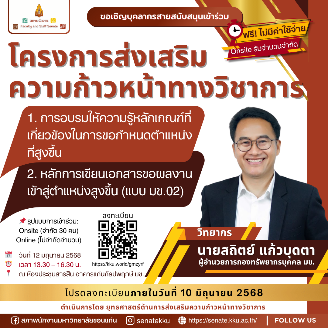 สภาพนักงาน มข. เปิดโครงการส่งเสริมความก้าวหน้าทางวิชาการ สายสนับสนุน 🚀 ยกระดับศักยภาพบุคลากรสู่ตำแหน่งที่สูงขึ้น! 🎓อ่านต่อ