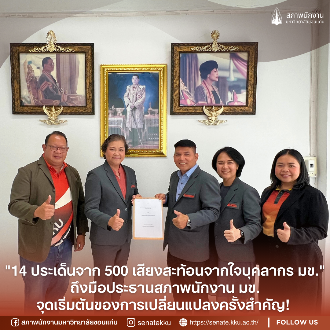 🟤 “14 ประเด็นจาก 500 เสียงสะท้อนจากใจบุคลากร มข.” ถึงมือประธานสภาพนักงาน จุดเริ่มต้นของการเปลี่ยนแปลงครั้งสำคัญ! 🟤อ่านต่อ